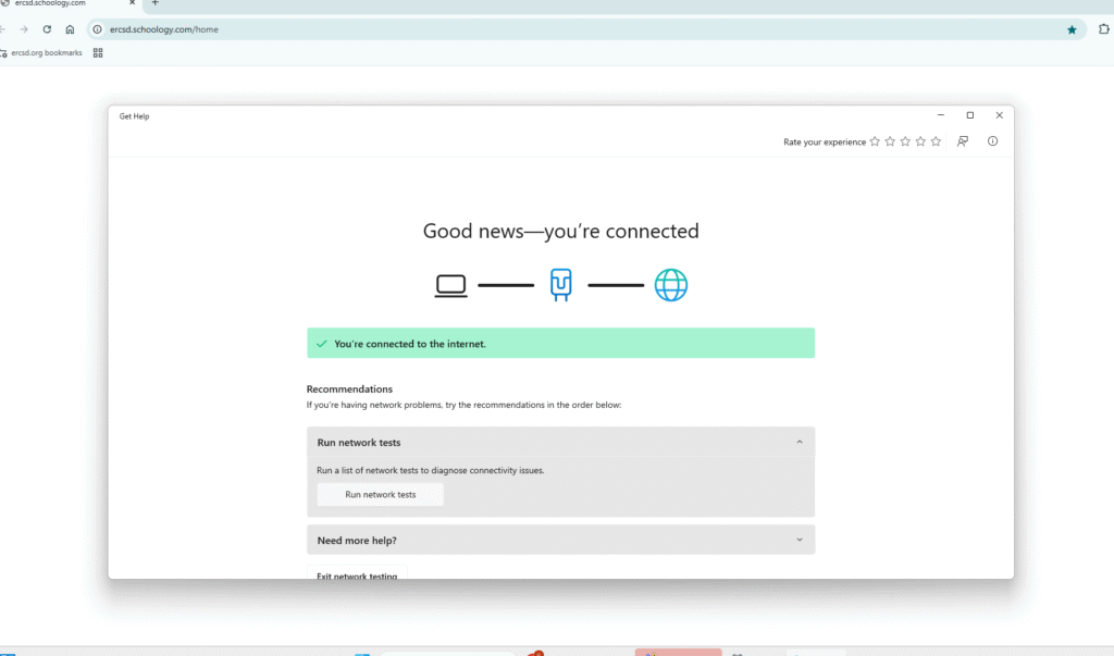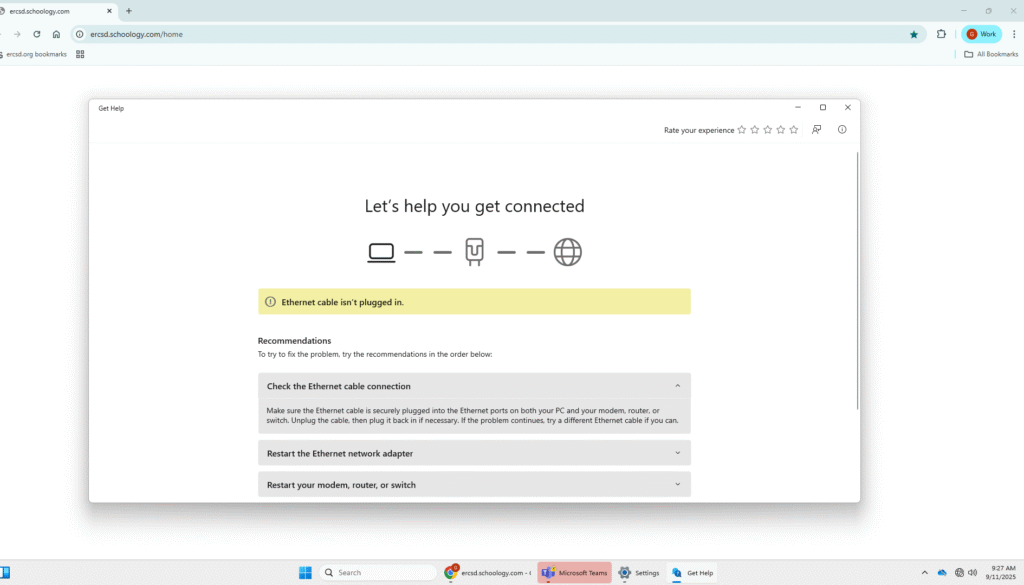 While working on a school desktop, the machine displayed a “No Internet Connection” error. The device was physically connected to the network via Ethernet, but it could not access the internet.